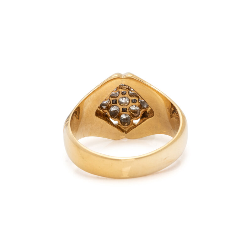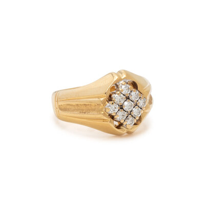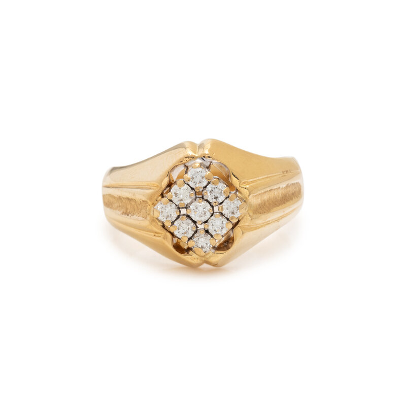 Round diamonds weighing approximately 0.35 carat total. 18 karat yellow gold. Ring size 7 1/2.