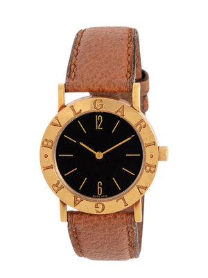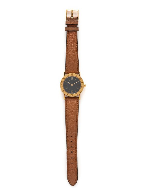 Bracelet/Strap: Brown leather signed Bulgari with 18K yellow gold Bulgari buckle