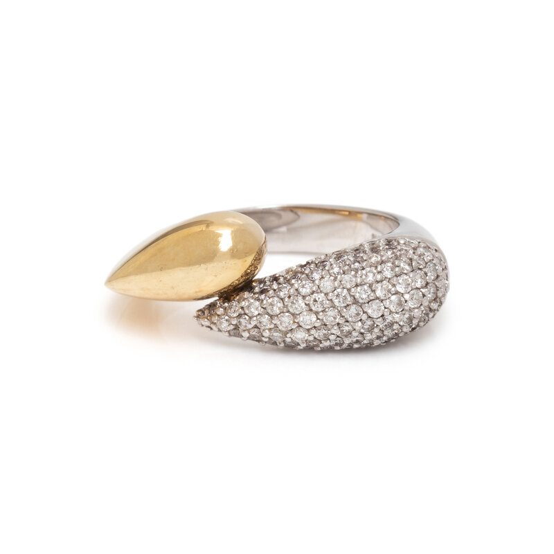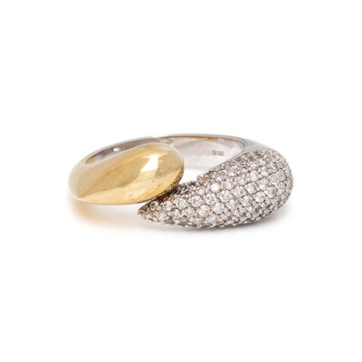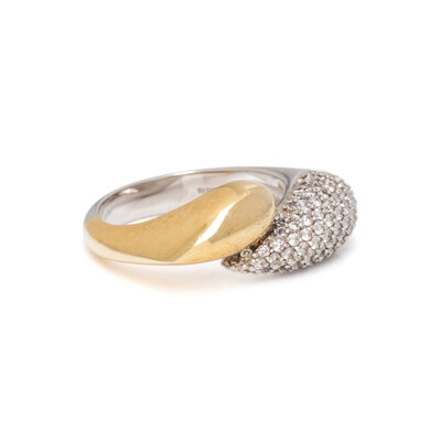 BICOLOR GOLD AND DIAMOND BYPASS RING