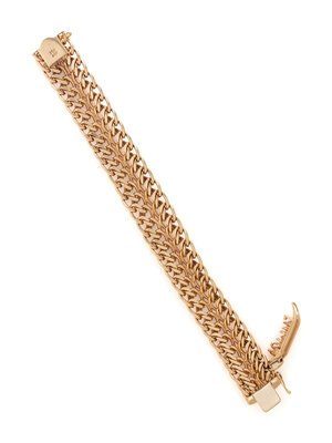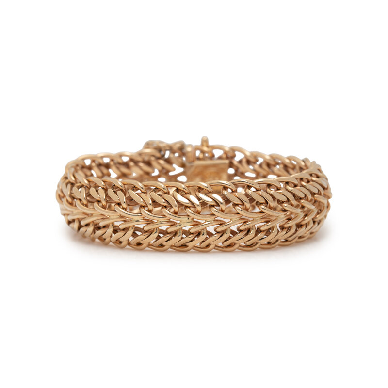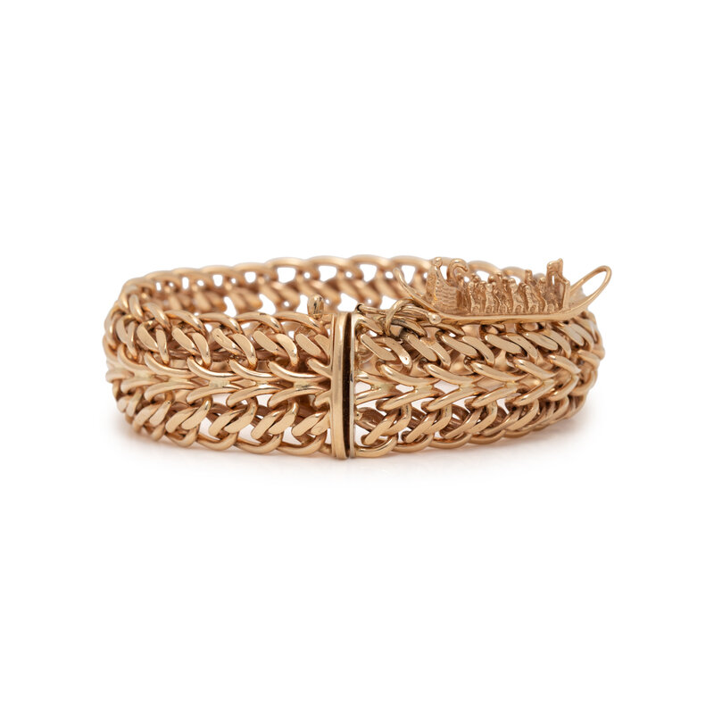 With a Boston Swan Boat charm. 14 karat yellow gold. 7 3/8 inches long, 3/4 inch wide.