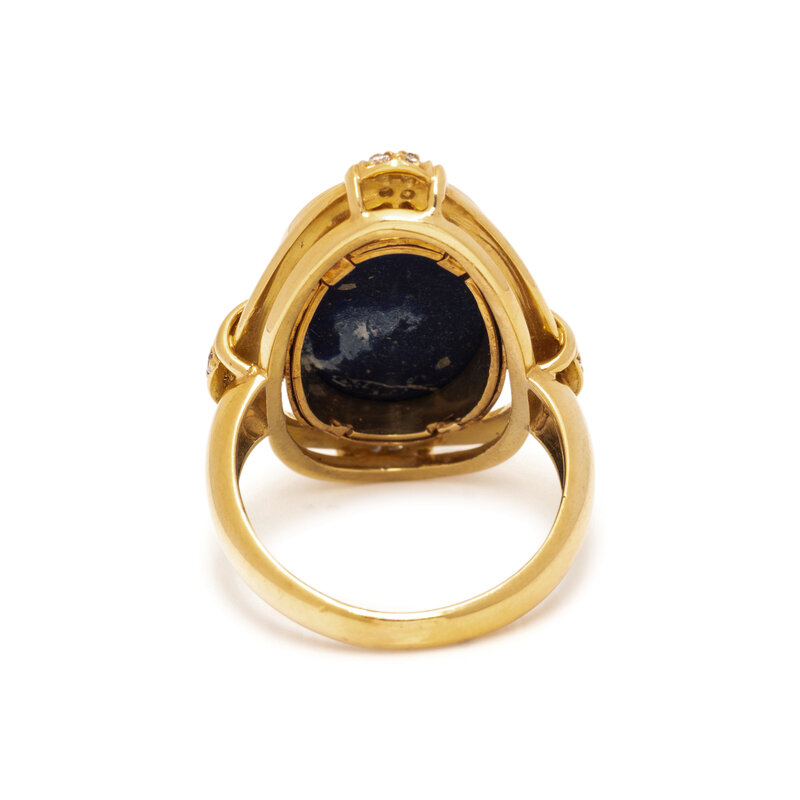 LAPIS LAZULI, DIAMOND, AND YELLOW GOLD RING