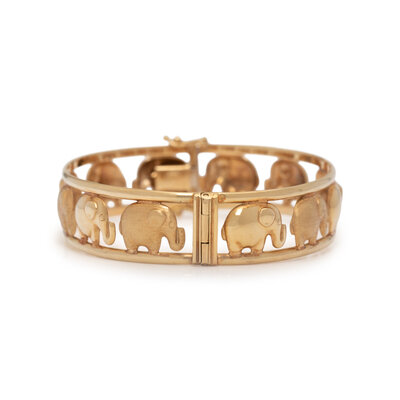 YELLOW GOLD ELEPHANT MOTIF BANGLE BRACELET