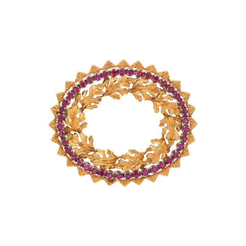 GOLD AND RUBY LEAF BROOCH