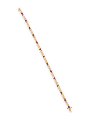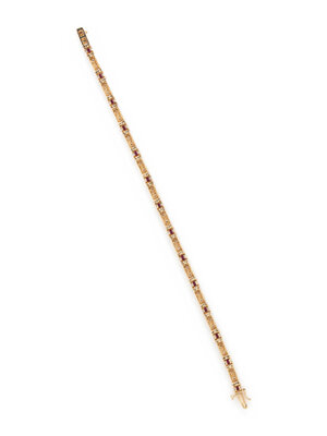 YELLOW GOLD, SYNTHETIC RUBY, AND DIAMOND BRACELET