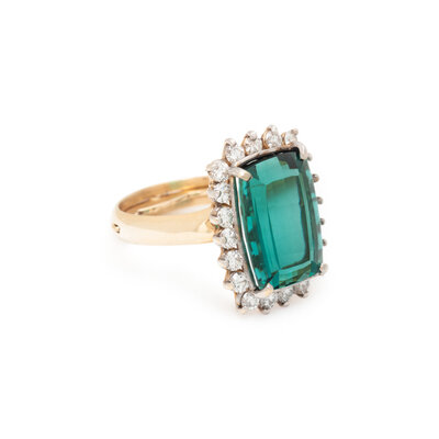 GREEN TOURMALINE AND DIAMOND RING