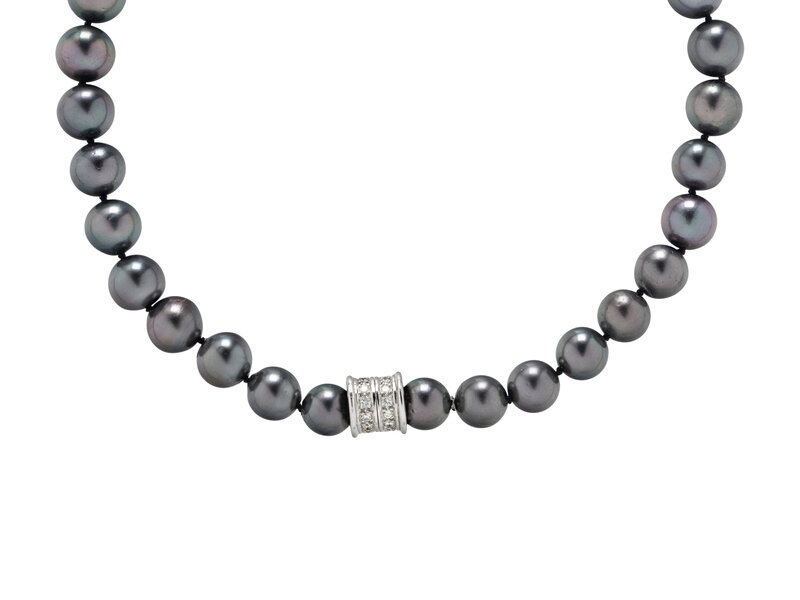 GRAY CULTURED PEARL AND DIAMOND NECKLACE