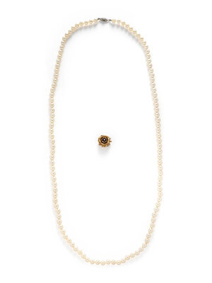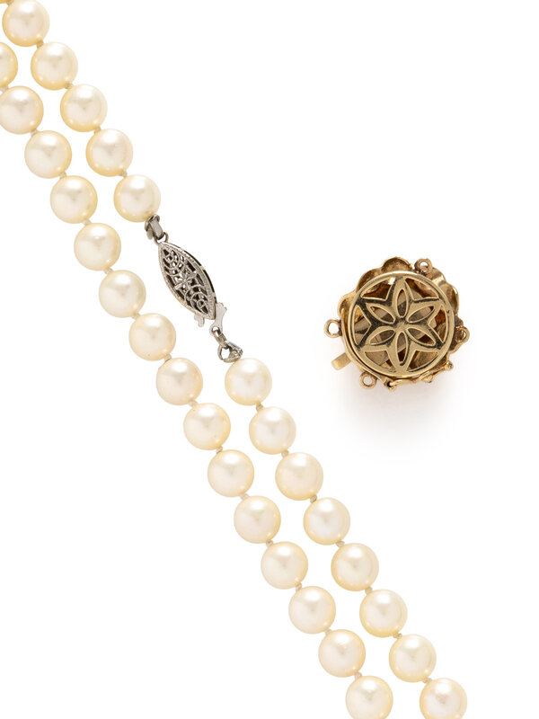 CULTURED PEARL NECKLACE AND YELLOW GOLD AND DIAMOND CLASP