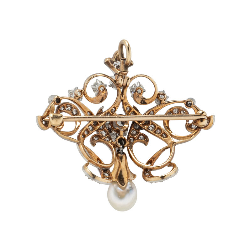 ANTIQUE, DIAMOND AND CULTURED PEARL BROOCH PENDANT