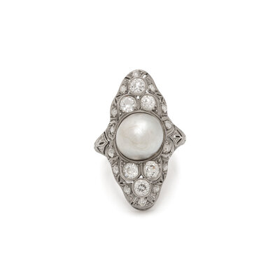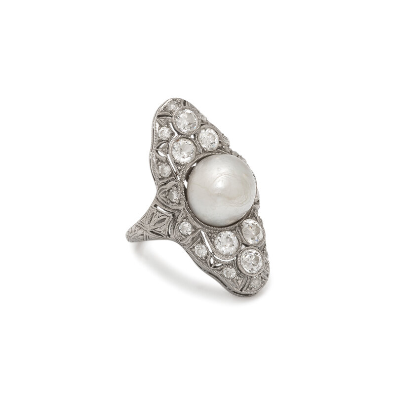ANTIQUE, PLATINUM, PEARL, AND DIAMOND RING