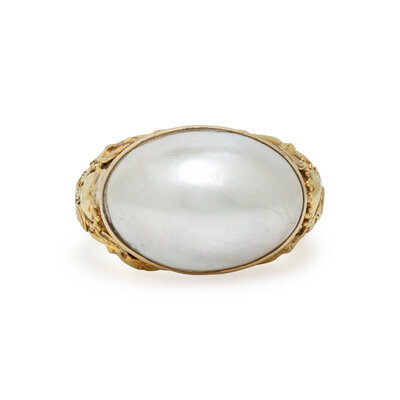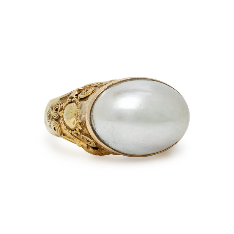 MABÉ PEARL AND YELLOW GOLD RING