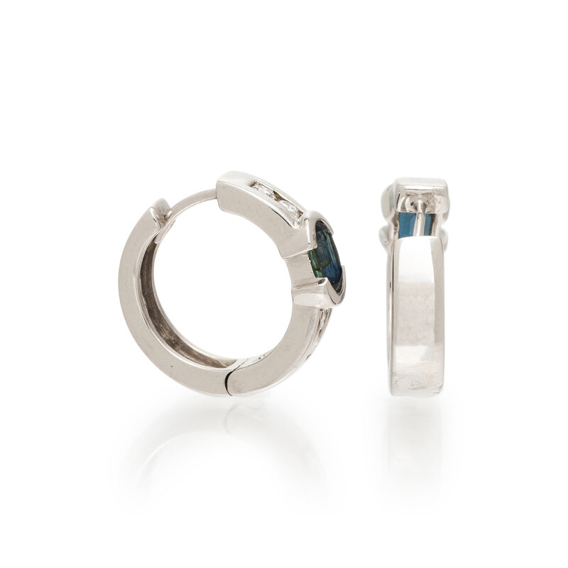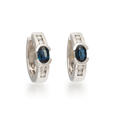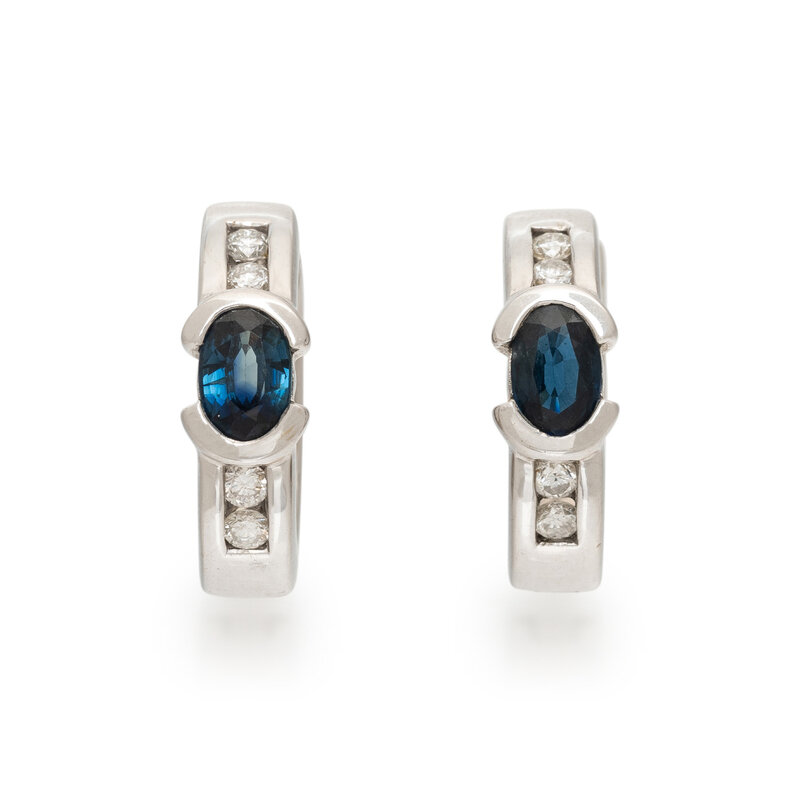SAPPHIRE, DIAMOND, AND WHITE GOLD HOOP EARRINGS