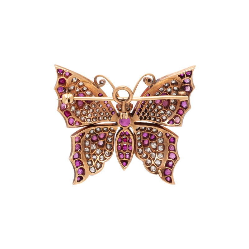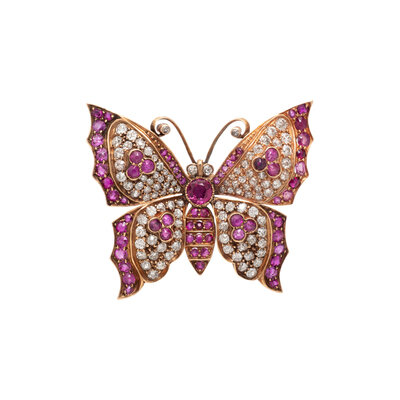 RUBY, DIAMOND, AND ROSE GOLD BUTTERFLY PENDANT BROOCH