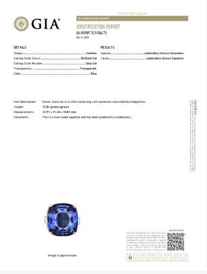 GIA, 2025, Report No. 5231586275, Blue, Laboratory-Grown Corundum, Laboratory-Grown Sapphire
