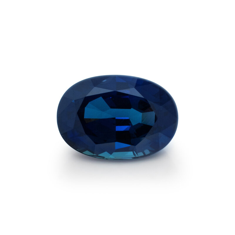 Oval mixed cut sapphire measuring 14.83 x 10.41 x 7.22 mm and weighing 9.77 carats.