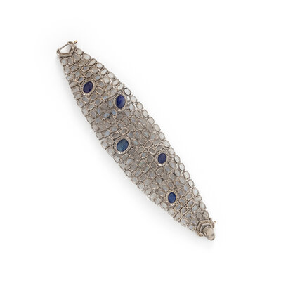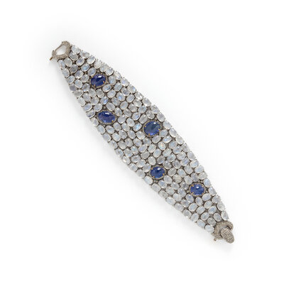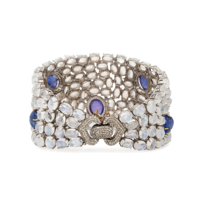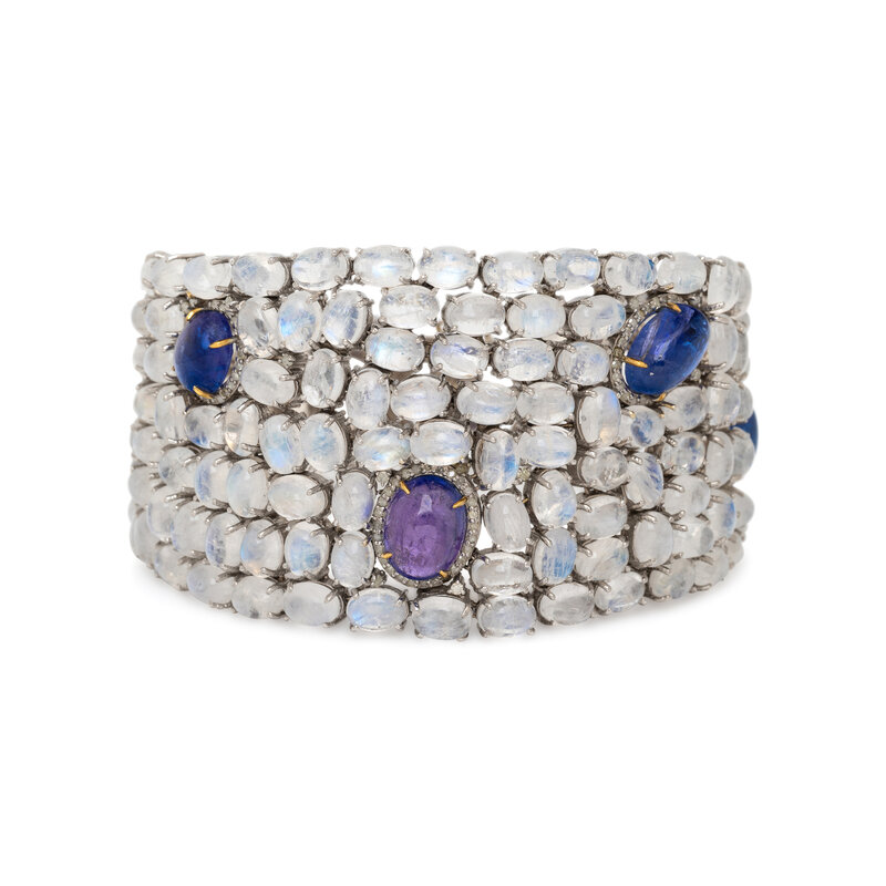 TANZANITE, MOONSTONE, AND DIAMOND BRACELET