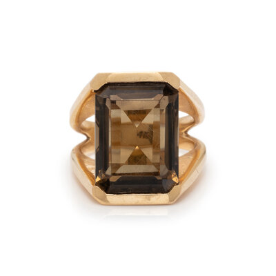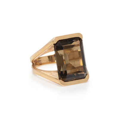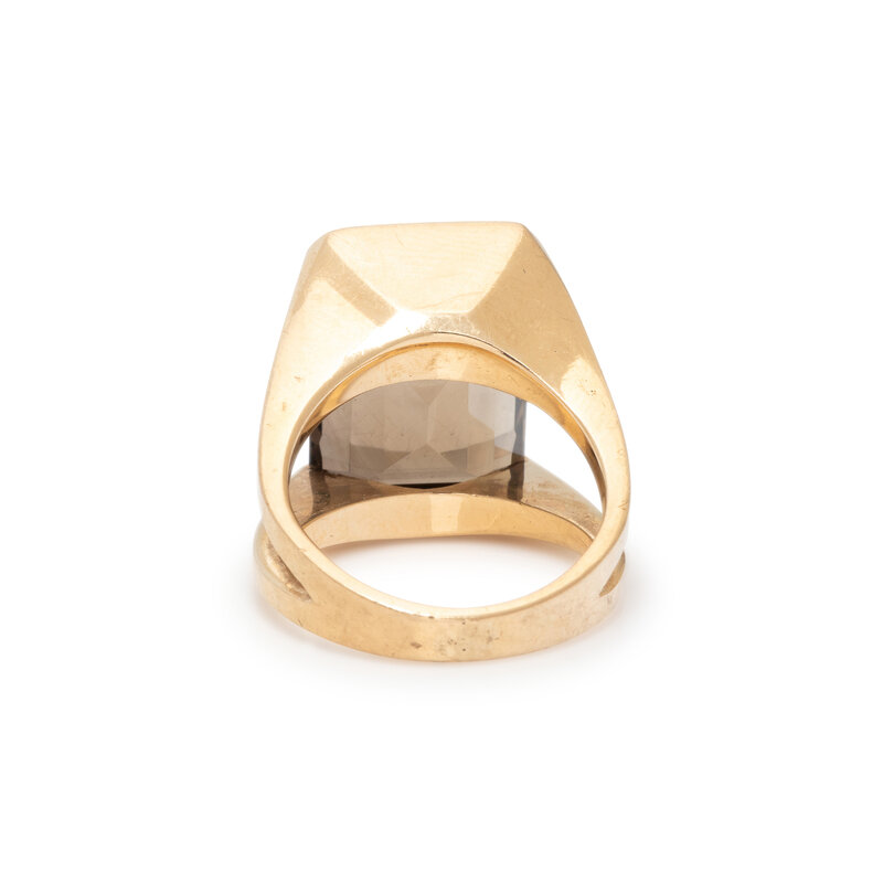 YELLOW GOLD AND SMOKEY QUARTZ RING