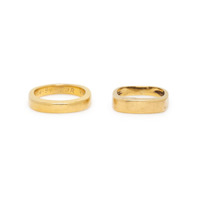 18 karat yellow gold. Rings size 5 1/2 and 7.