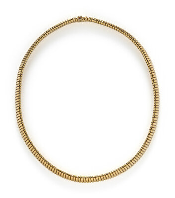 18 karat yellow gold. 14 3/4 inches long, 1/4 inch wide.