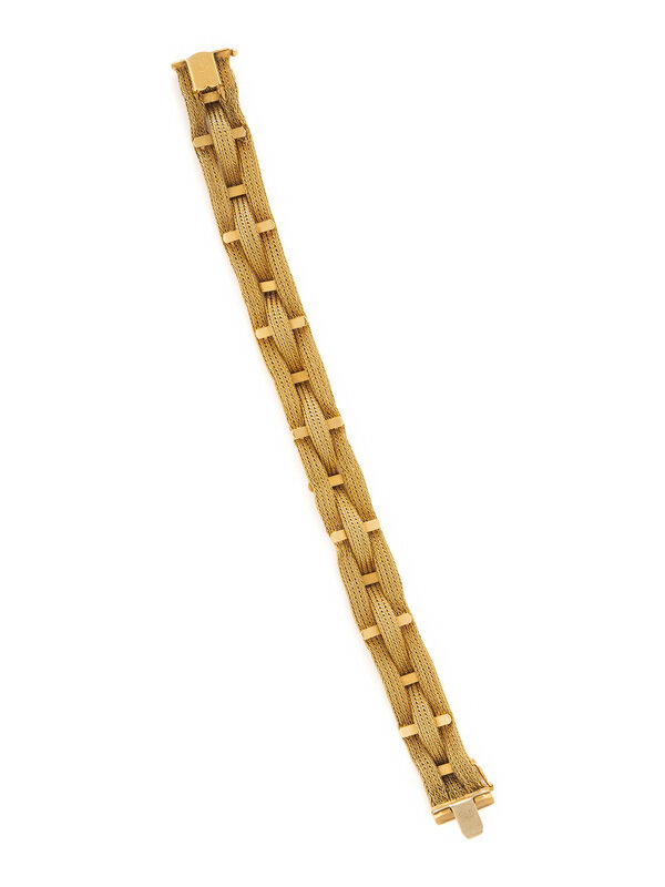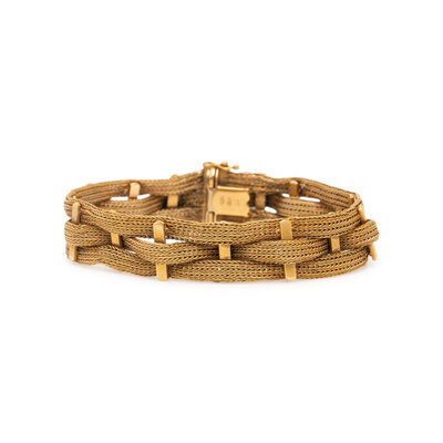 18 karat yellow gold. 7 1/4 inches long, 13.00 mm wide.