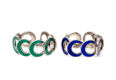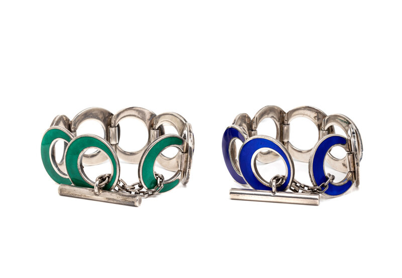 FRANZI, PAIR OF ENAMEL AND STERLING SILVER BRACELETS