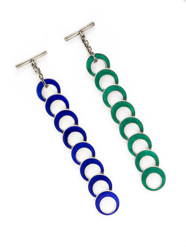 Blue and green enamel. Sterling silver. 7 1/2 inches long, 28.00 mm wide.