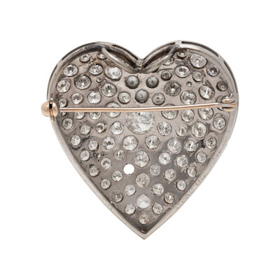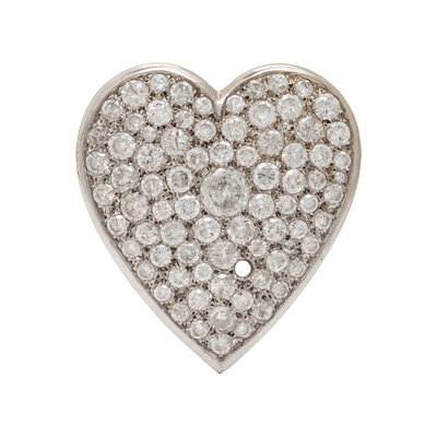 Round diamonds weighing approximately 5.00 - 6.00 carats total. Mounted in white gold. 1 1/2 x 1 3/8 inches.