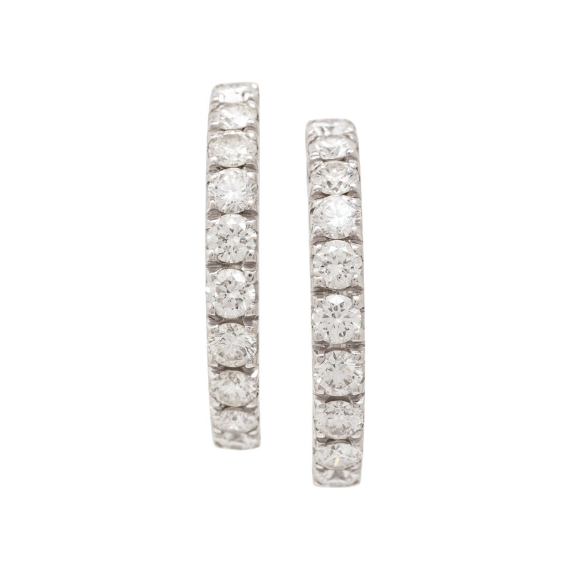Round diamonds weighing approximately 3.00 carats total. 18 karat white gold. 1 inch long.