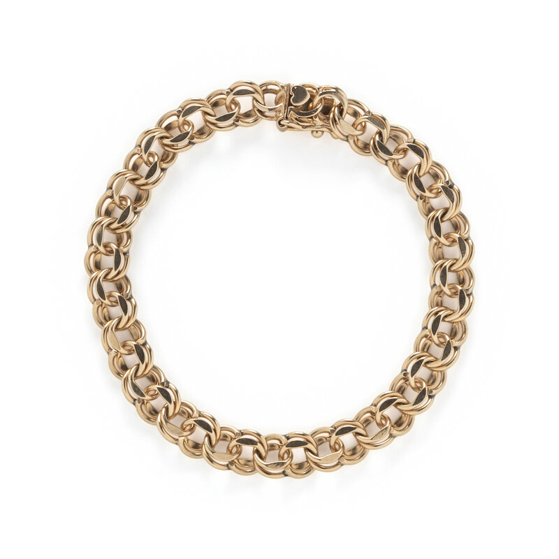 14 karat yellow gold. 7 1/4 inches long, 8.00 mm wide.