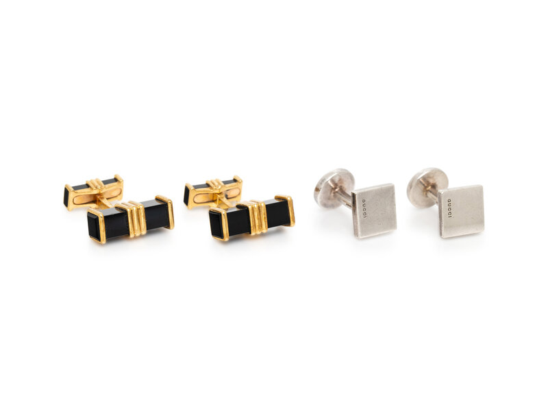 Including a pair of sterling silver Gucci cufflinks, and a pair of 18 karat yellow gold and black onyx Chaumet cufflinks. 1/2 - 3/4 inch wide.