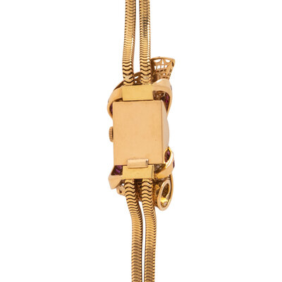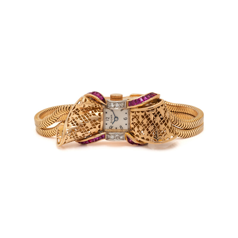 FRENCH, RETRO, YELLOW GOLD, RUBY, AND DIAMOND WATCH