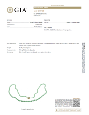 GIA, 2019, Report No. 6207674975, Jadeite Jade, Natural color, No indications of impregnation