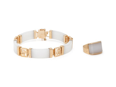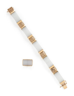 WHITE JADE AND YELLOW GOLD BRACELET AND RING