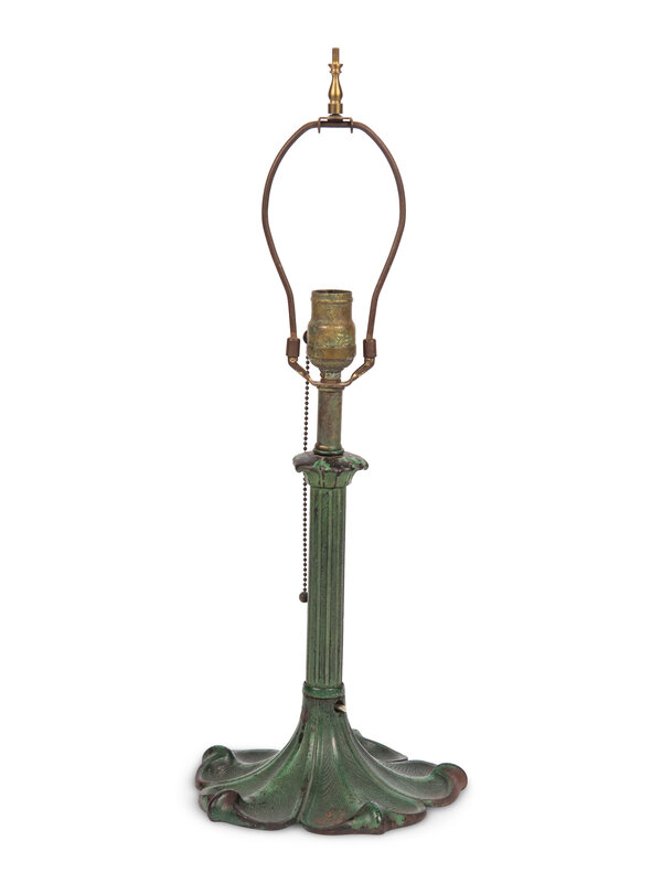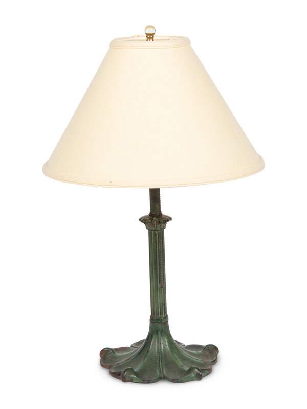 An Art Nouveau Style Green-Painted Cast Metal Lamp