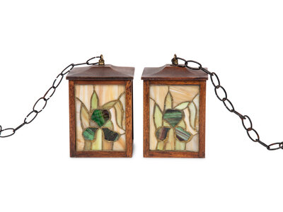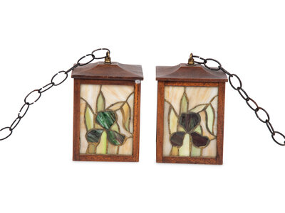 A Pair of Arts and Crafts Style Leaded Glass Pendant Lights