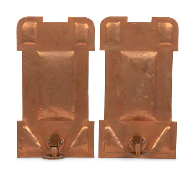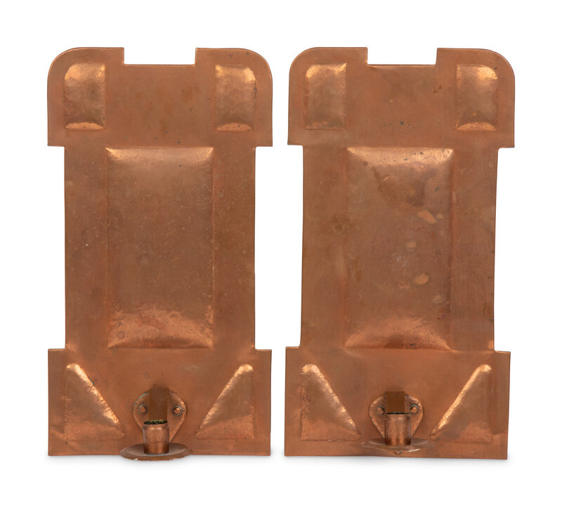 A Pair of Arts and Crafts Hammered Copper Sconces
