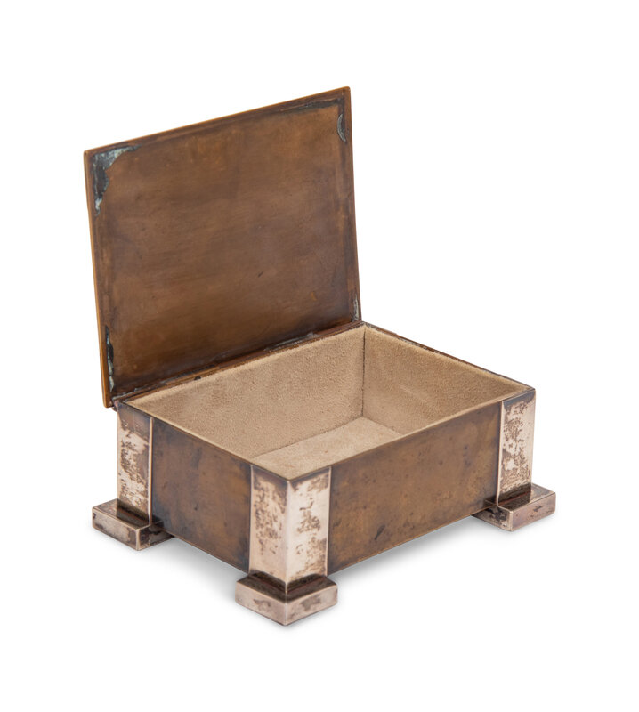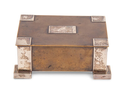 An Arts and Crafts Bronze and Silver Table Casket