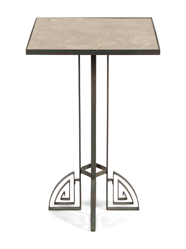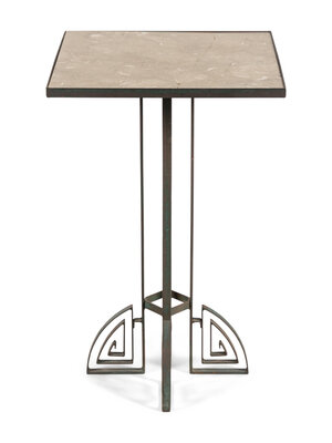 An Art Deco Stone-Top Iron Side Table