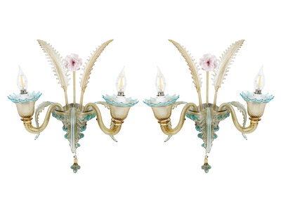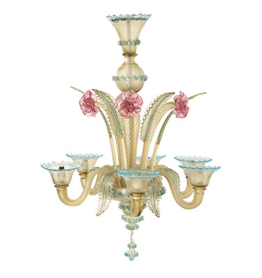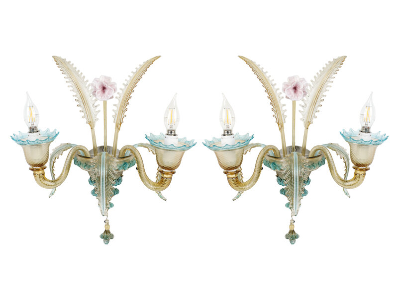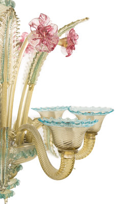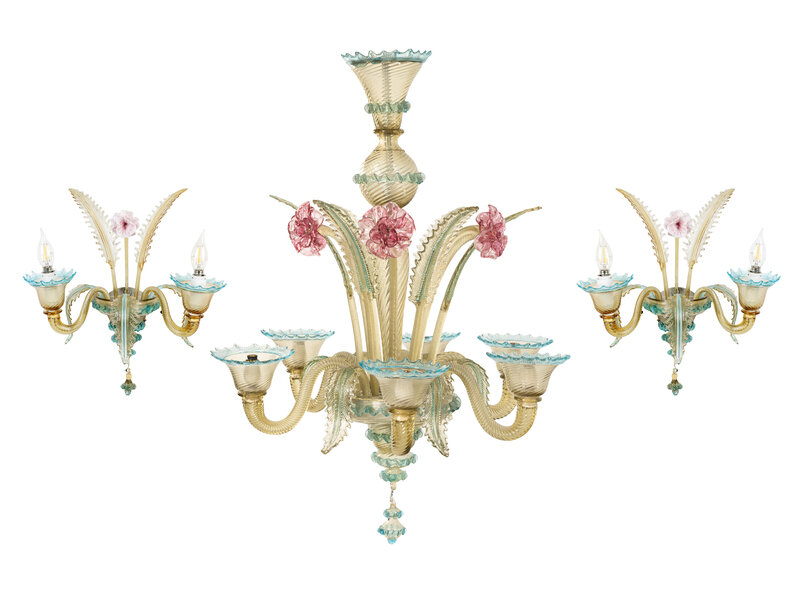 A Murano Colored Glass Chandelier and Matching Sconces