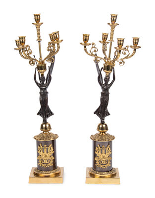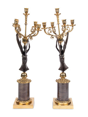 A Pair of Empire Style Gilt Metal Five-Light Candelabra