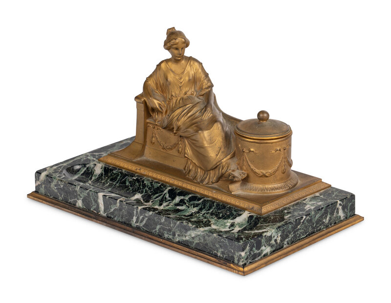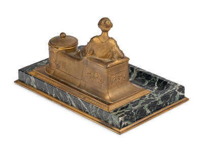 An Austrian Gilt Bronze and Marble Figural Inkwell