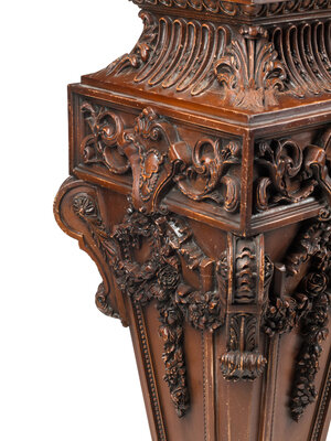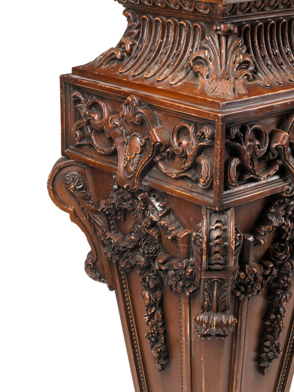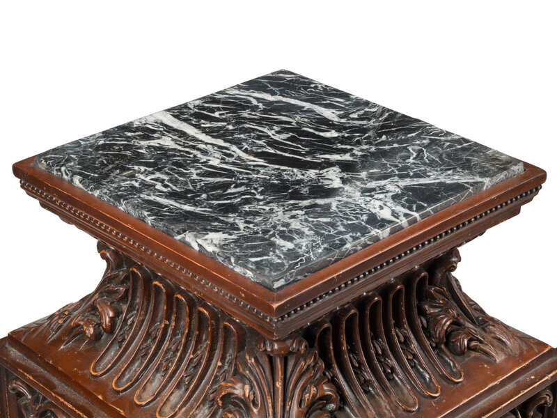 A Pair of Italian Baroque Style Carved Wood Marble-Top Pedestals