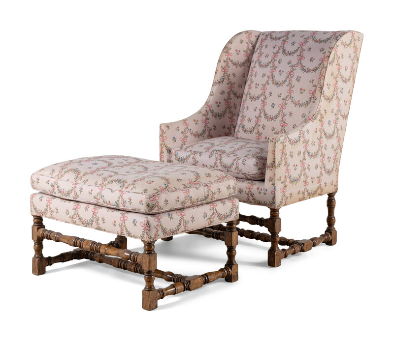 A Louis XIII Style Carved Armchair and Ottoman