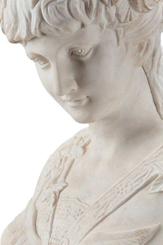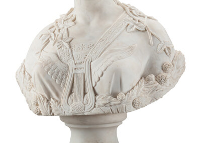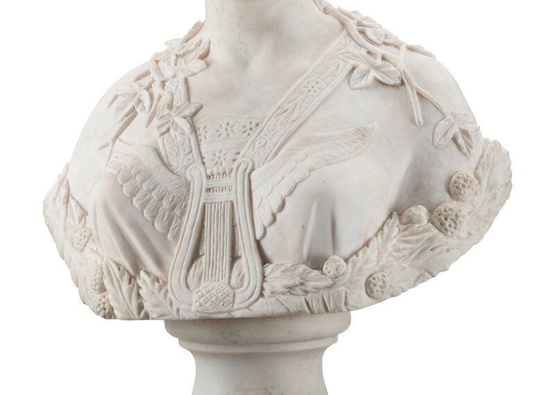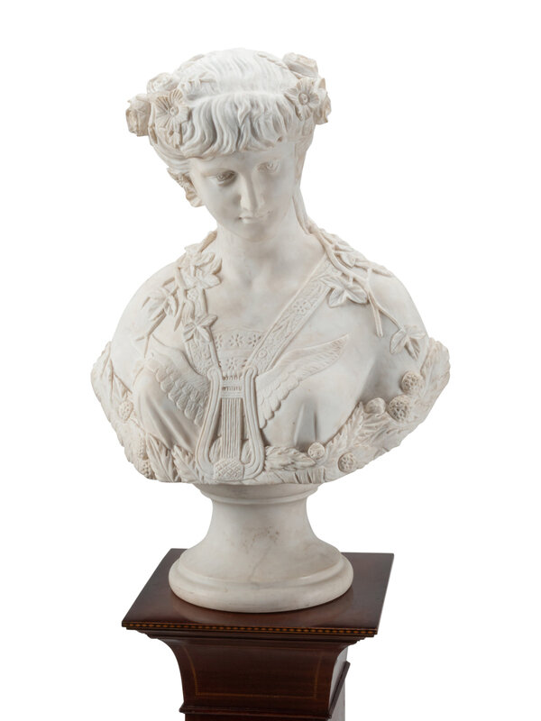 An Italian Marble Bust with an Associated Line-Inlaid Mahogany Pedestal