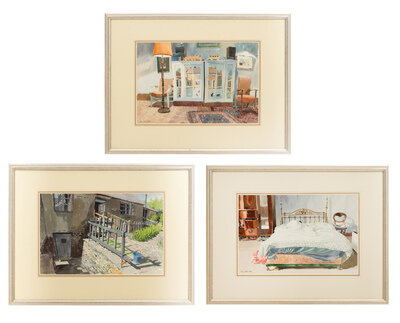 Each watercolor: height 14 1/2 x Width 21 1/2 (sight), framed height 26 x width 34 inches.