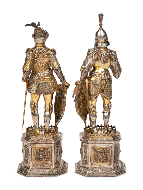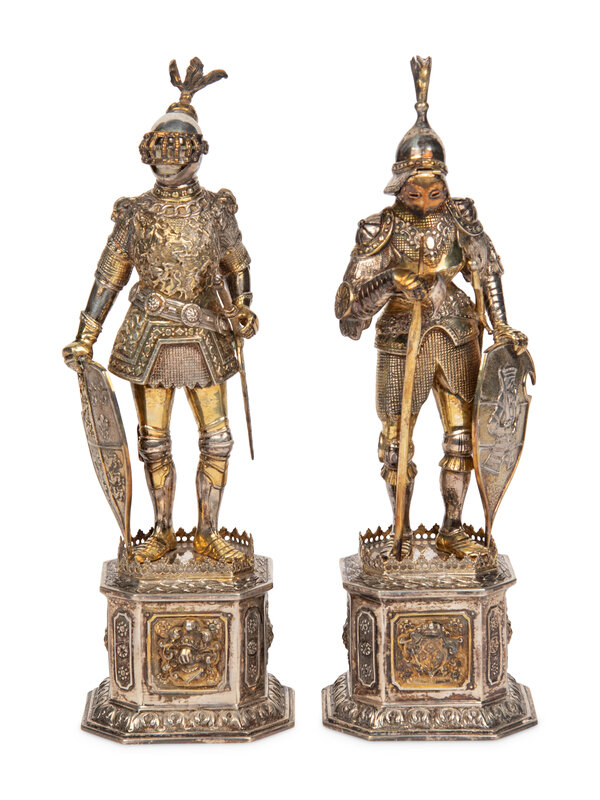 A Pair of German Silver and Parcel-Gilt Figures of Knights