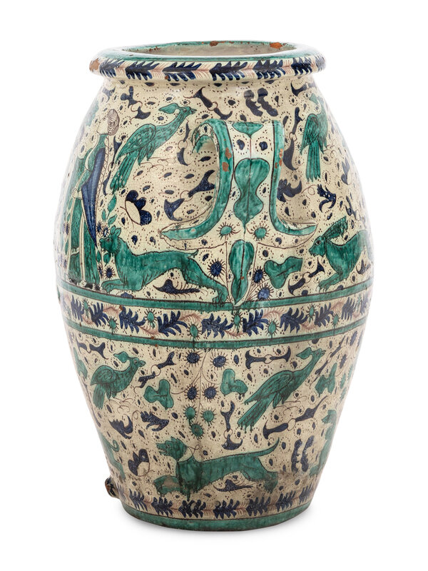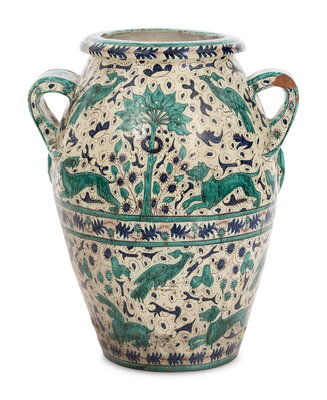 A Monumental Italian Majolica Double-Handle Vessel