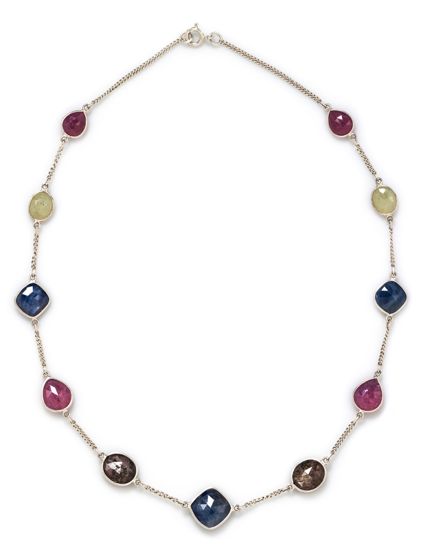 A Sterling Silver and Multicolored Corundum Necklace, 10.10 dwts.