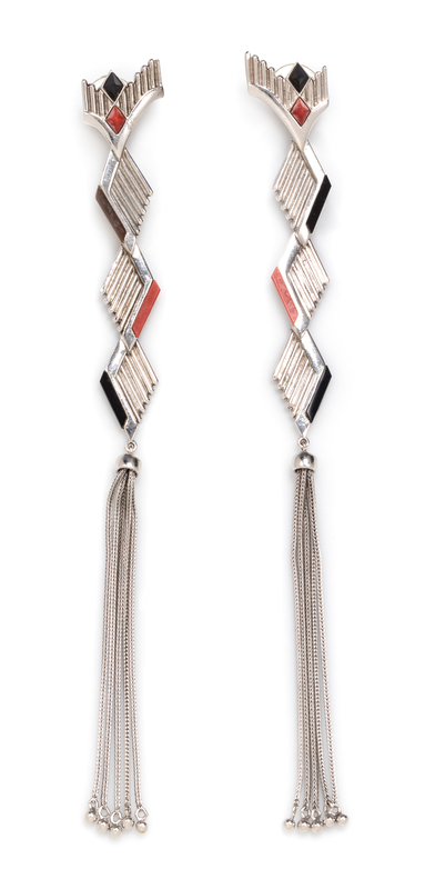 A Pair of Sterling Silver, Onyx and Coral Earrings, Erte, 15.30 dwts.