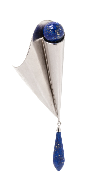 A Sterling Silver and Lapis Lazuli Brooch, Erte, 13.80 dwts.
