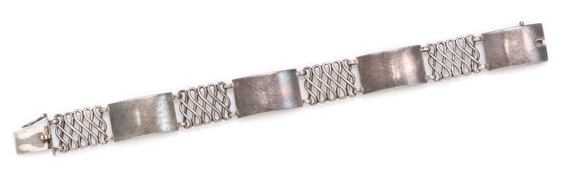 consisting of four curved rectangular links alternating with four figure eight designed links.Stamp: (maker's mark for Georg Jensen circa 1933-1944) STERLING DENMARK 925 62.